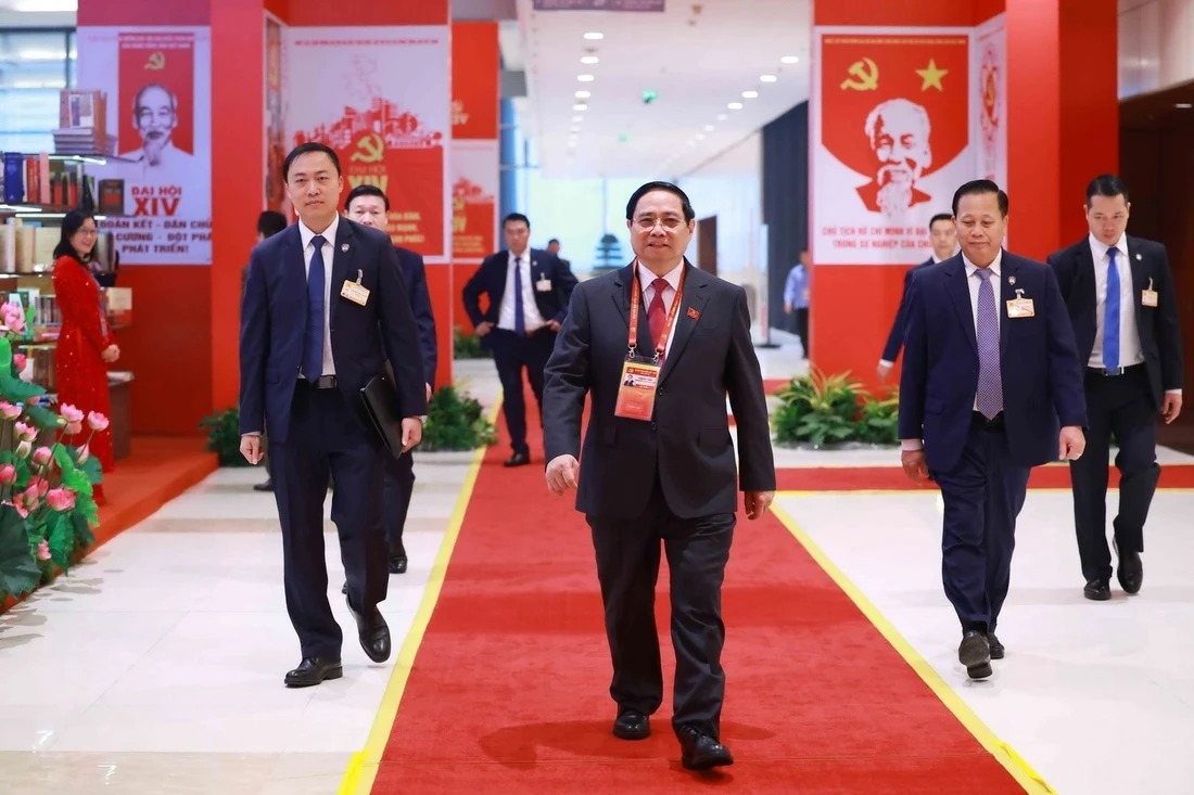 Thủ tướng Phạm Minh Chính đến dự phiên trù bị Đại hội XIV của Đảng - Ảnh: TTXVN |