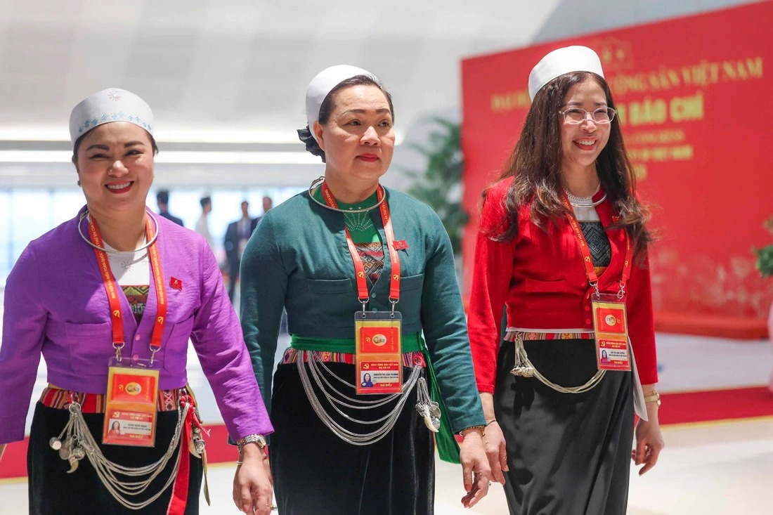 Ba nữ đại biểu Đoàn đại biểu Đảng bộ tỉnh Phú Thọ dự phiên trù bị - Ảnh: NGUYỄN KHÁNH |