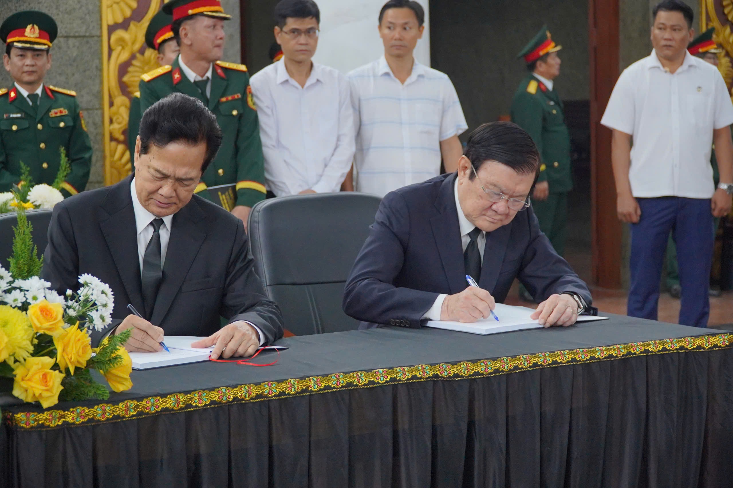 Nguyên Chủ tịch nước Trương Tấn Sang và nguyên Thủ tướng Chính phủ Nguyễn Tấn Dũng viết sổ tang |