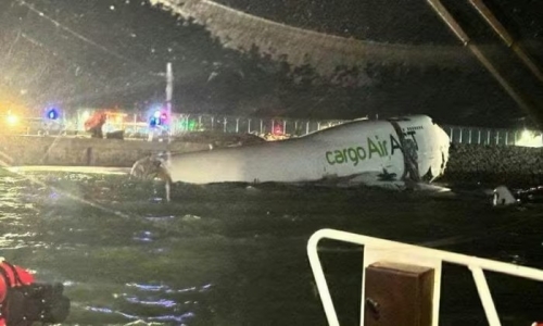 Máy bay chở hàng lao xuống biển tại sân bay Hong Kong, 1 người mất tích