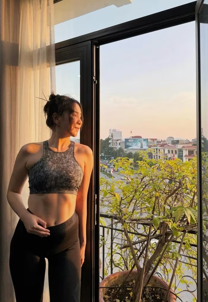 Ban đầu, người đẹp ưu tiên các bài tập nhẹ nhàng như pilates kết hợp đi bộ để phục hồi thể lực. Sau khi cơ thể quen dần với cường độ vận động, cô chuyển sang chạy máy tại nhà và tăng dần các bài tập siết cơ. |