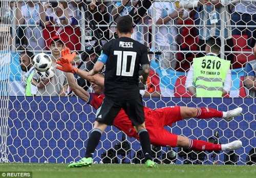 Messi đá hỏng penalty trong trận gặp Iceland ở vòng bảng World Cup 2018, bỏ lỡ cơ hội mang về chiến thắng 2-1 cho Argentina. Ảnh: Reuters |