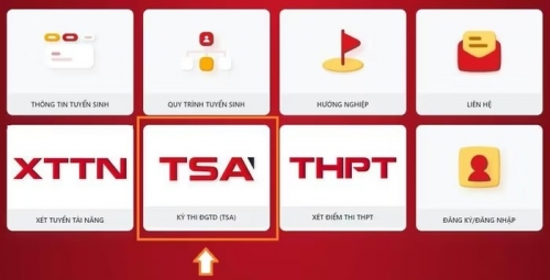Nhấp chuột vào biểu tượng "Kỳ thi ĐGTD (TSA)", chọn "Đăng ký" để tiếp tục.