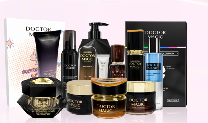 Theo đó toàn bộ các sản phẩm từ kem dưỡng, kem trị nám, sữa rửa mặt, kem chống nắng, tẩy tế bào chết, dung dịch vệ sinh đến mặt nạ... đều thuộc thương hiệu Doctor Magic.