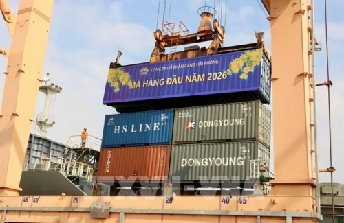 Ngày 1/1, tại Cầu tàu số 1 - Chi nhánh Cảng Tân Vũ, Công ty cổ phần Cảng Hải Phòng tổ chức Lễ ra quân - sự kiện mang ý nghĩa khởi động và khẳng định quyết tâm hành động ngay từ giờ phút đầu tiên của năm mới, phấn đấu đạt mục tiêu sản lượng 60 triệu tấn trong năm 2026; trong đó container đạt 3 triệu TEU.