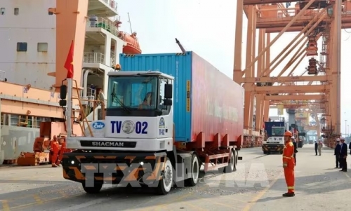 Năm 2026, Cảng Hải Phòng đặt mục tiêu phấn đấu sản lượng 60 triệu tấn, trong đó container đạt 3 triệu TEU. Ảnh: Minh Huệ - TTXVN |