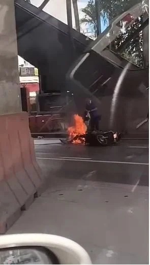 Đoạn video do camera an ninh ghi lại vào khoảng 10 giờ sáng cho thấy người đàn ông đang bị ngọn lửa nuốt trọn và chạy khỏi trạm xe buýt trước Sở Phát triển Đất đai. Các sinh viên hoảng loạn bỏ chạy khi anh ta loạng choạng trên đường, va chạm với một chiếc xe máy bên dưới hệ thống tàu điện trên cao BTS Sena Nikom.
