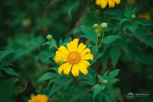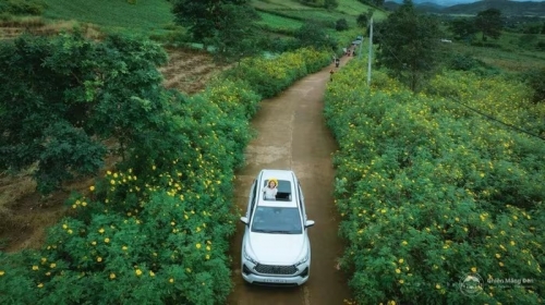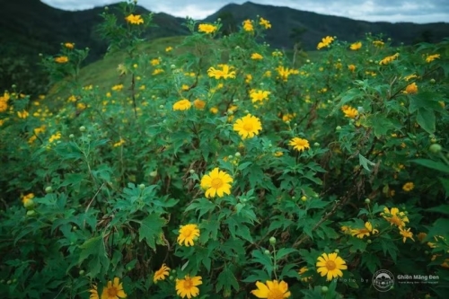 Dọc theo lối lên núi, những khóm dã quỳ mọc san sát hai bên, tạo thành những luống hoa vàng rực rỡ. Đây cũng là địa điểm check-in lý tưởng, nơi du khách dễ dàng có những khung hình ấn tượng giữa thảm hoa và nền trời cao nguyên trong xanh. |