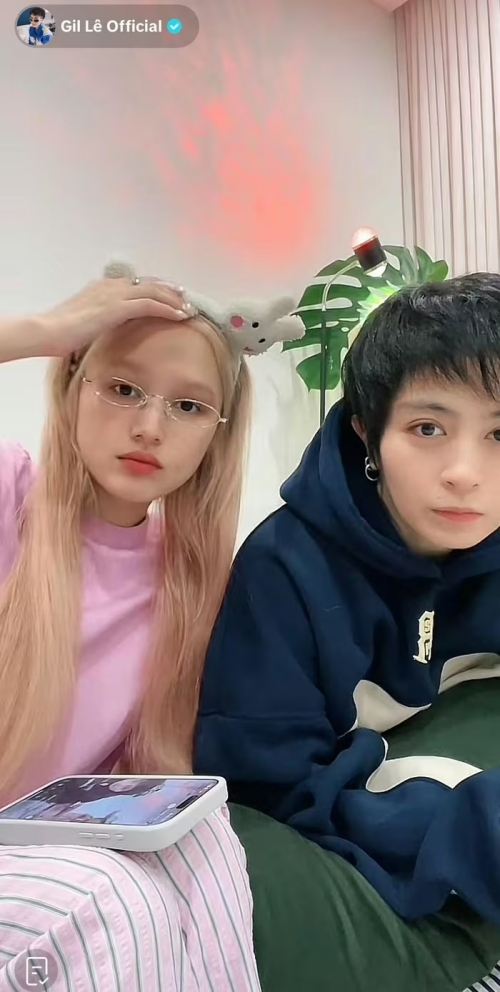Tối 22/10, Gil Lê đã đăng tải hình ảnh đi chơi cùng hội bạn thân thiết trên trang cá nhân. Trong bức hình, Xoài Non ngồi núp phía sau lưng của người yêu, lấy tay tạo dáng như để che chắn không để lộ rõ toàn bộ gương mặt của mình. Một số netizen còn cho rằng hot girl sinh năm 2002 đang có hành động né camera sau khi có sự thay đổi về ngoại hình. |