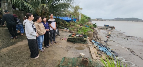 5 ngày qua, chị Lê Thị Thanh Hương, vợ anh Khanh cùng 2 con gái và con rể tìm kiếm trong vô vọng. (Ảnh: Thành Tâm) |