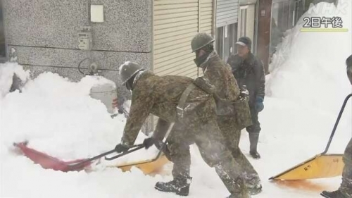 Trong một động thái liên quan, từ ngày 02/02, Lực lượng Phòng vệ Nhật Bản đã điều động nhiều nhân viên tham gia hoạt động cứu trợ thiên tai, tiến hành công tác thu thập thông tin, và hỗ trợ người dân dọn tuyết trên mái nhà. Một cụ bà tại Aomori chia sẻ: “Năm nay tuyết rơi thật khủng khiếp. Tôi thực sự cảm thấy biết ơn vì sự hỗ trợ của lực lượng Phòng vệ. Từ nay tôi có thể an tâm mà ngủ ngon hơn rồi”.