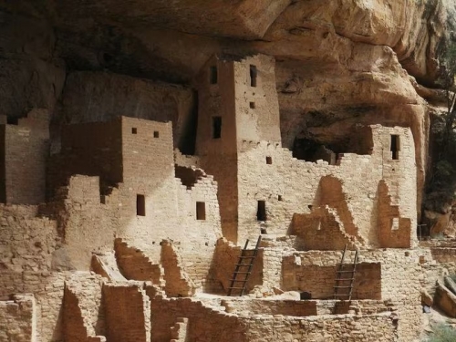 Kiến trúc làng đá nhiều tầng. Nhà ở truyền thống của người Hopi được xây bằng đá và bùn, xếp tầng trên các vách mesa. Ảnh: Pinterest. |