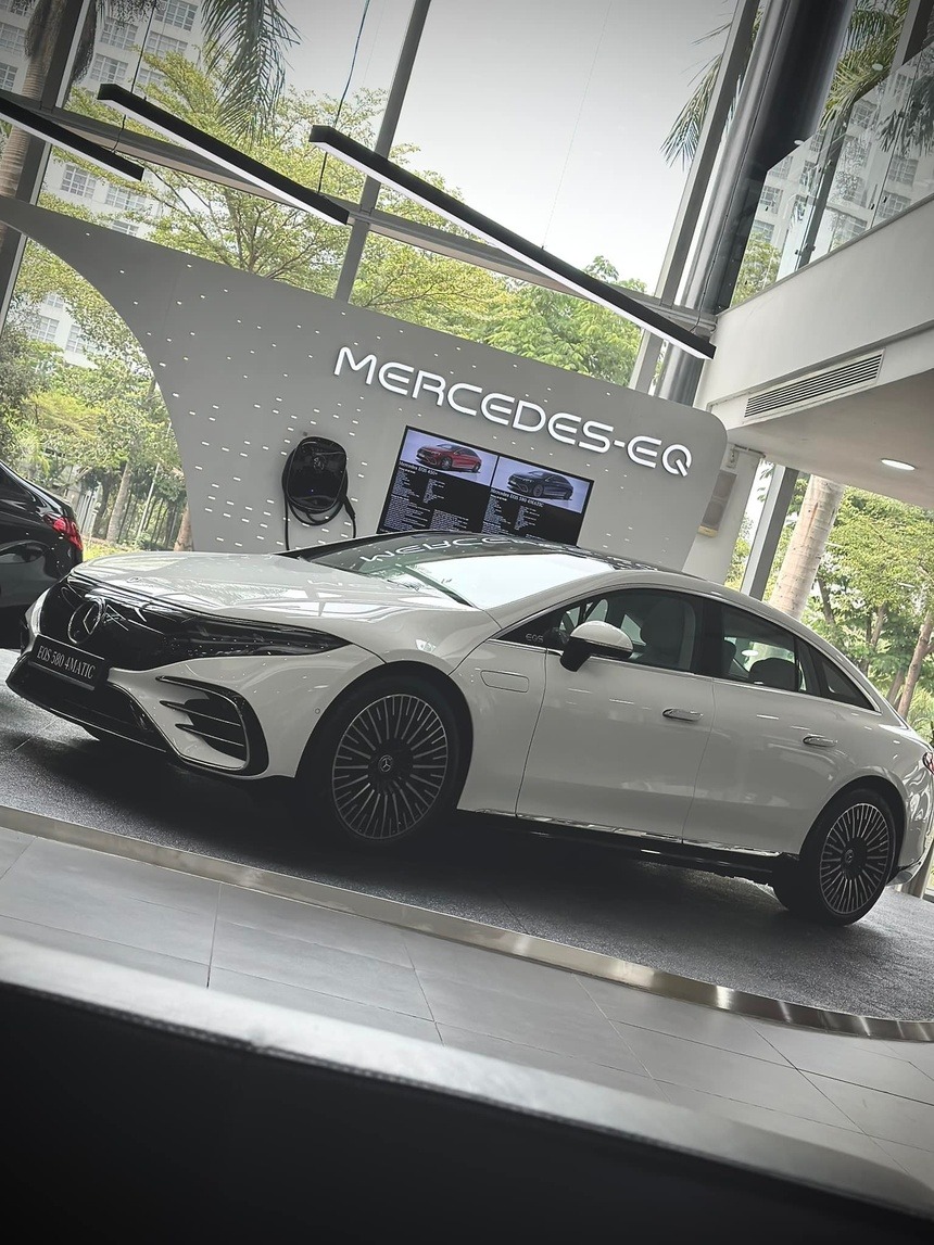 Mercedes-Benz EQS 500 4Matic cũng từng xuất hiện trong garage của cặp vợ chồng đại gia Quốc Vũ - Đoàn Di Băng. Mẫu xe chạy điện này có giá 4,999 tỷ đồng. |