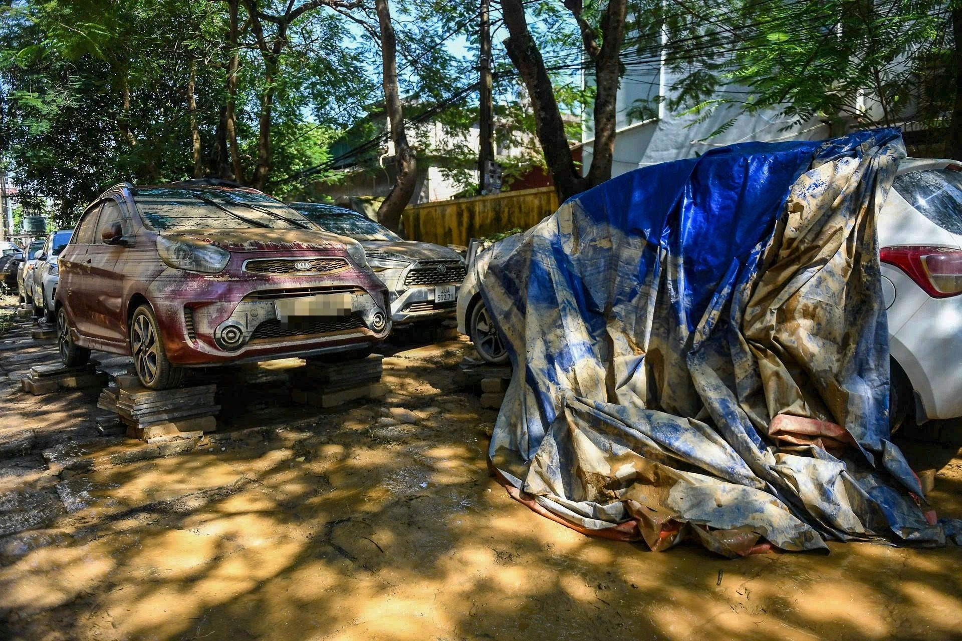 Ô tô đầy bùn đất sau khi lũ rút ở Thái Nguyên |