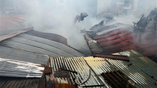 Thời điểm lực lượng chức năng tiếp cận hiện trường, do bên trong có nhiều vật liệu dễ bắt lửa nên đám cháy đã phát triển lớn, cùng với đó phát sinh khói và khi độc; tốc độ cháy lan nhanh, có nguy cơ lan sang các ki-ốt và nhà dân xung quanh.