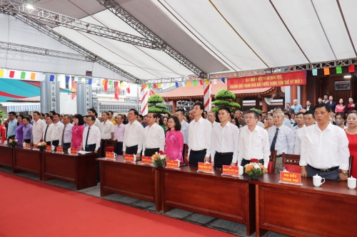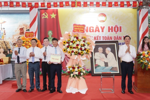 Lãnh đạo phường An Biên tặng hoa chúc mừng Ngày hội. |