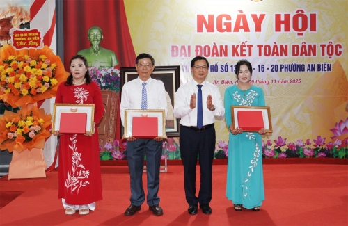Chủ tịch UBND phường An Biên tặng danh hiệu cho 4 Tổ dân phố 13, 15, 16 và 20 đạt danh hiệu “Tổ dân phố văn hóa” năm 2025 và 2.379 gia đình đạt danh hiệu “Gia đình văn hóa” trong đó có 20 “Gia đình văn hóa tiêu biểu” năm 2025.