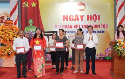 Tại Ngày hội, Ban Thường trực Ủy ban MTTQ Việt Nam thành phố đã trao tặng 10 suất quà cho các hộ có hoàn cảnh khó khăn thuộc 4 Tổ dân phố nhân tháng cao điểm “Vì người nghèo”.