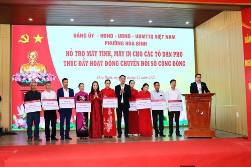 Ngày 15/11, Đảng ủy phường Hòa Bình tổ chức trao đợt 1 gồm 10 bộ máy tính và máy in tặng 10/30 tổ dân phố, chỉ hơn nửa tháng sau (ngày 2/12) tiếp tục trao 20 bộ máy tính, máy in tặng 20 tổ dân phố còn lại. Chỉ trong thời gian ngắn, 30/30 tổ dân phố trên địa bàn được trang bị đầy đủ máy tính và máy in với tổng trị giá 390 triệu đồng, hoàn thành trước gần 4 tháng so với kế hoạch dự kiến (tháng 3-2026).