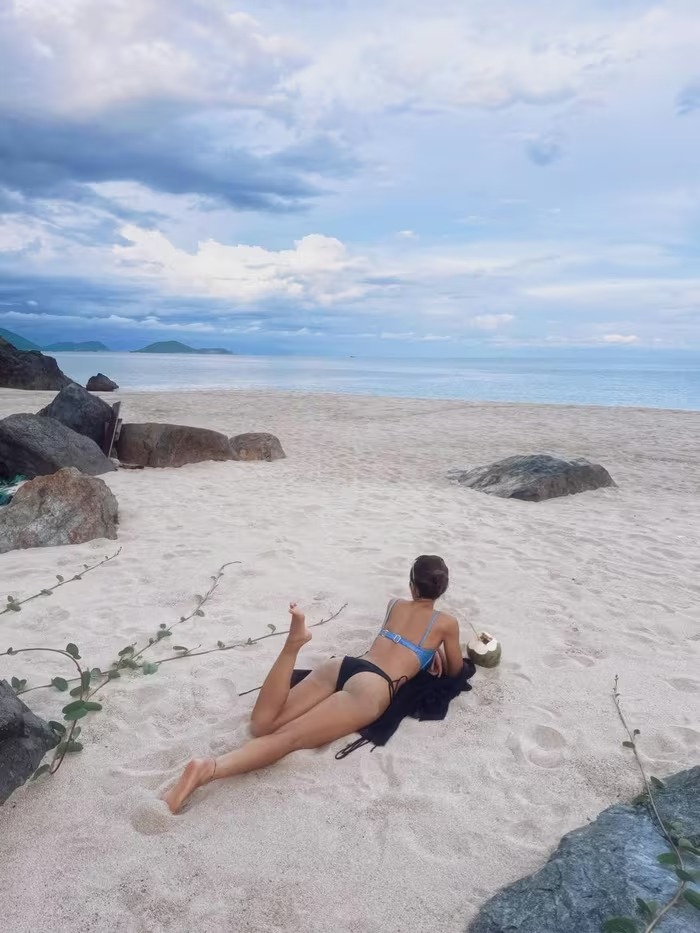 Phương Ly cho biết tranh thủ tắm nắng trong các chuyến đi diễn ở vùng biển. Ảnh: @may__lily. |