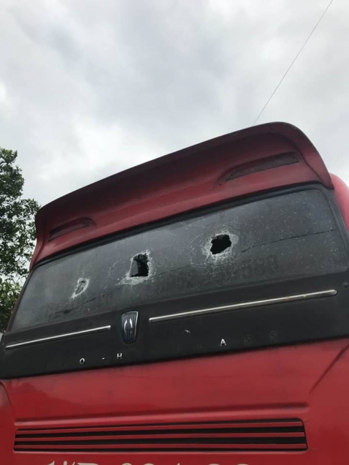 Xe khách của gia đình anh Mười bị kẻ xấu bắn, ném vỡ kính. |