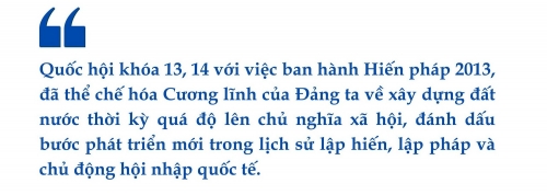 Quốc hội khóa XIII, XIV với việc ban hành Hiến pháp 2013, đã thể chế hóa Cương lĩnh của Đảng ta về xây dựng đất nước thời kỳ quá độ lên chủ nghĩa xã hội, đánh dấu bước phát triển mới trong lịch sử lập hiến, lập pháp và chủ động hội nhập quốc tế.