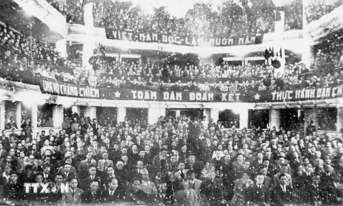 Ngày 6/1/1946, cuộc Tổng tuyển cử đầu tiên bầu Quốc hội Việt Nam diễn ra thành công trên phạm vi cả nước, đánh dấu mốc son quan trọng trong tiến trình xây dựng thể chế dân chủ và khẳng định quyền làm chủ của nhân dân Việt Nam. Trong ảnh: khai mạc Kỳ họp thứ nhất, Quốc hội khóa I, ngày 2/3/1946. (Nguồn: Tư liệu TTXVN) |