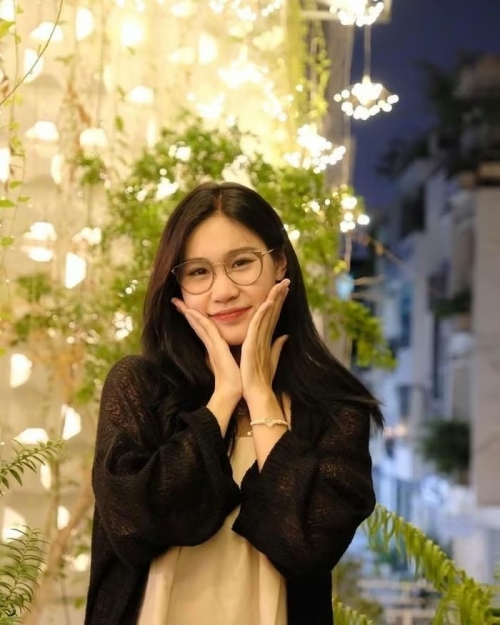 Gương mặt thanh tú, nụ cười hiền cùng ánh mắt sáng sau cặp kính cận khiến Phương Anh toát lên vẻ đẹp vừa tri thức vừa gần gũi. |
