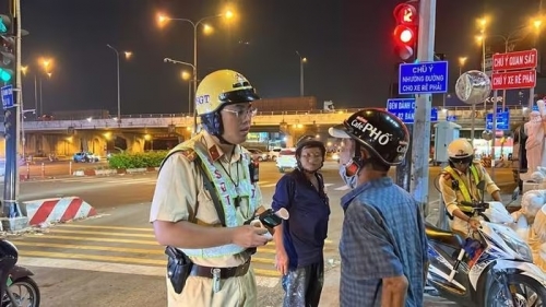 Tối 15-12, lực lượng Đội CSGT Rạch Chiếc, Phòng CSGT Công an TPHCM lập chốt trên Quốc lộ 12, đoạn cầu vượt Bình Phước, phường Hiệp Bình, thực hiện chuyên đề kiểm tra nồng độ cồn. Lực lượng CSGT kết hợp tuần tra, kiểm soát phát hiện người vi phạm nồng độ cồn, tiến hành xử lý.