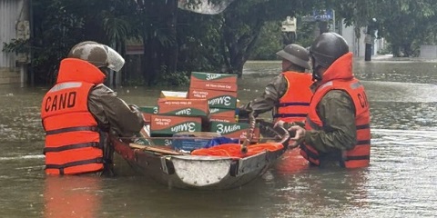 Xuyên đêm tìm kiếm 5 người mất tích, Công an tiếp tế đến từng hộ dân vùng ngập