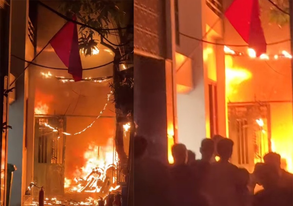Hàng xóm nghe thấy tiếng trẻ em gào khóc và khói đen bốc lên từ căn nhà ở phố Vĩnh Phúc (Ba Đình, Hà Nội) nên hô hào cùng nhau dập lửa nhưng bất thành.