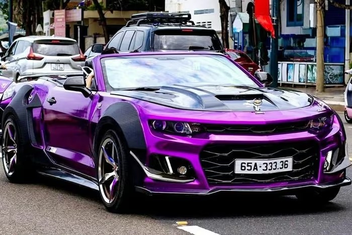Với bodykit độ lạ mắt, biển tứ quý Cần Thơ và quan trọng, màu tím sến súa, chiếc Chevrolet Camaro mui trần đã ngay lập tức thu hút sự chú ý của người đi đường.