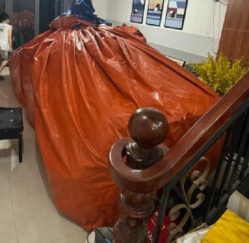 Bọc xe BMW, đàn piano kín mít bằng bạt để chống bão ở Đà Nẵng
