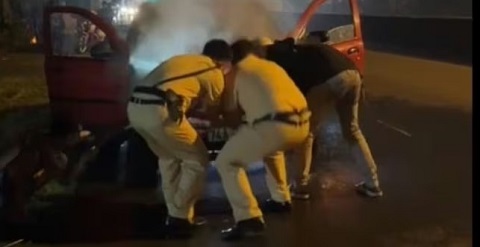 CSGT Tây Ninh cứu đôi nam nữ mắc kẹt trong chiếc ôtô bốc cháy