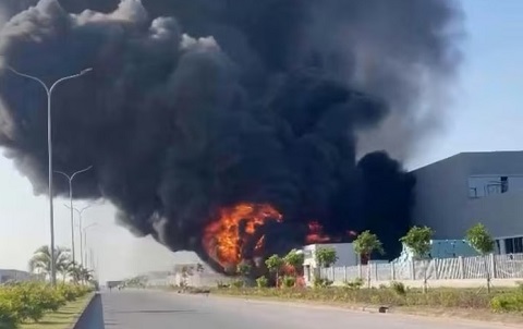 Một vụ cháy xảy ra tại khu vực tập kết phế liệu của một công ty ở địa bàn phường Đông Hải, TP Hải Phòng.