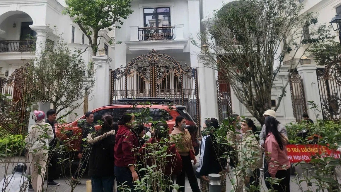 Tại biệt thự của Hoàng Hường chiều 4/1, có hàng chục công nhân tập trung trước cửa để đòi tiền lương nhưng chưa được giải quyết.