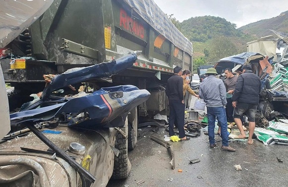 Vụ va chạm giữa xe ô tô tải và xe đầu kéo trên QL6 đoạn qua phường Mộc Châu, tỉnh Sơn La khiến 2 người bị thương, giao thông ách tắc nhiều giờ.