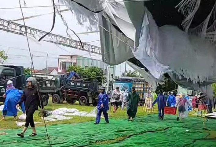 Xót xa rạp cưới ở Đà Nẵng bị gió quật te tua trong bão số 10 Bualoi