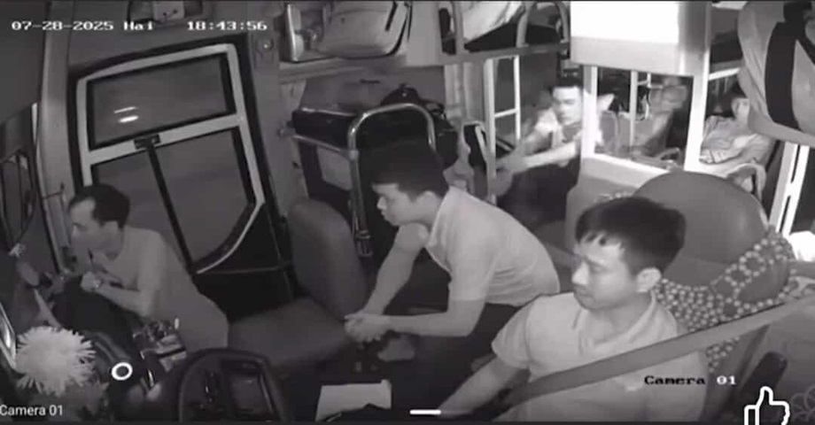 Đang quá trình nói chuyện, người hành khách bỗng bật dậy, lao tới dùng tay đánh vào mặt tài xế đang điều khiển xe khách.