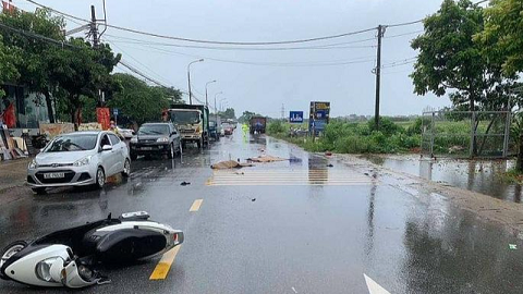 Va chạm với xe tải, hai vợ chồng đi xe máy tử vong. Sau tai nạn, lái xe tải cũng rời khỏi hiện trường.