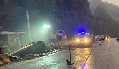 Xe khách lật trên quốc lộ trong trời mưa mù, 4 người c/h/ế/t tại chỗ