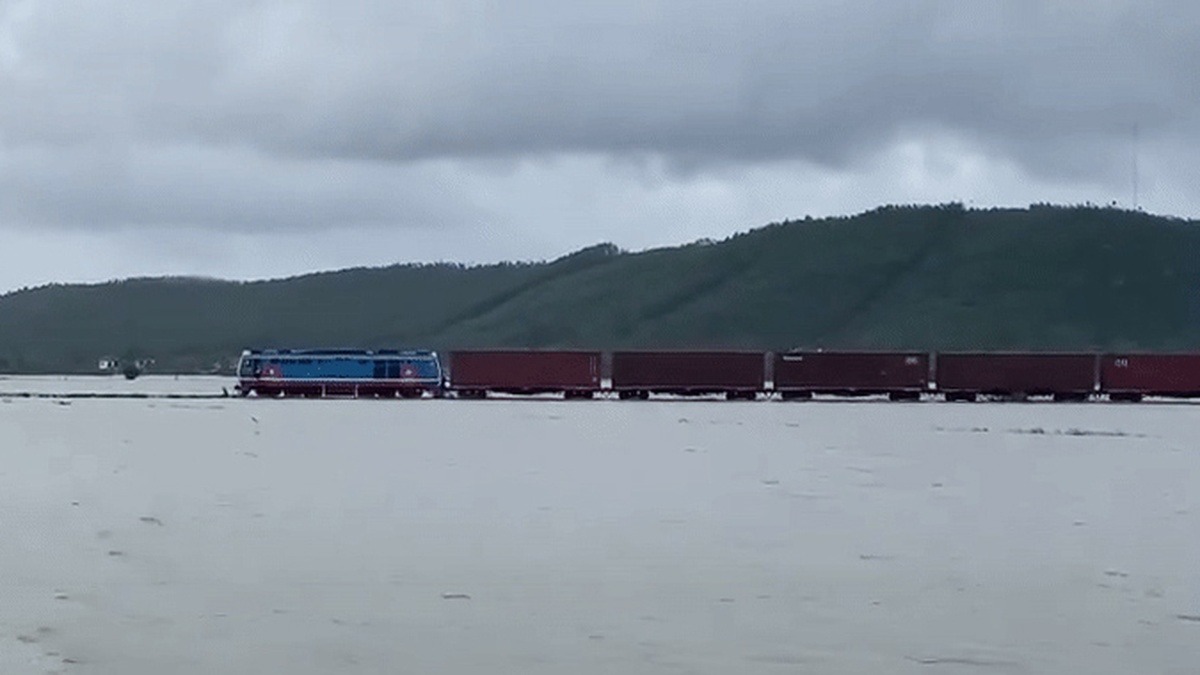 Đoạn video ghi lại cảnh tàu hỏa di chuyển chậm giữa mênh mông nước lũ tại Thanh Hóa sau bão số 10 (Bualoi) nhanh chóng gây "bão" mạng xã hội.
