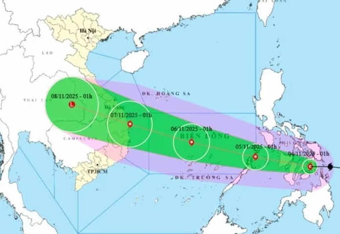Từ đêm 6-11, bão Kalmaegi dự báo có khả năng gây ra các đợt dông, lốc trước bão; ảnh hưởng trực tiếp tới khu vực từ Đà Nẵng đến Khánh Hòa.