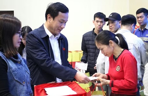 Phó Chủ nhiệm Ủy ban Văn hóa và Xã hội Triệu Thế Hùng trao quà Tết cho công nhân tại Hải Phòng