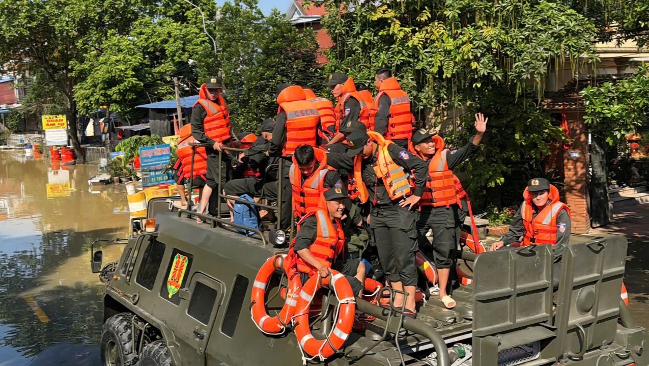 Dàn xe đặc chủng lội nước hỗ trợ người dân vùng lũ lụt Hà Nội