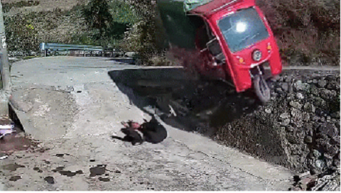 Clip: Văng xuống đường, người đàn ông bị xe ba bánh đè trúng