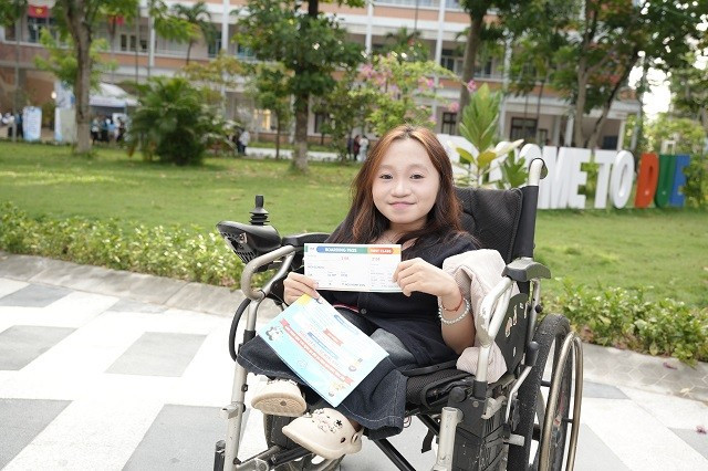 Đoàn Gia Khánh, tân SV Trường ĐH Kinh tế Đà Nẵng bị xương thủy tinh bẩm sinh, phải di chuyển bằng xe lăn. Em luôn nỗ lực tự học để theo đuổi ước mơ.