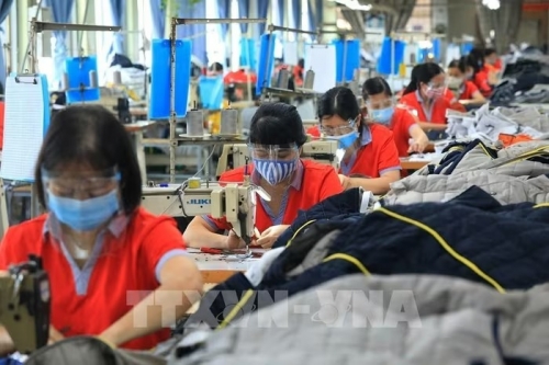 Hoạt động sản xuất tại Công nhân Công ty CP may Chiến Thắng. Ảnh tư liệu: Tuấn Anh - TTXVN |