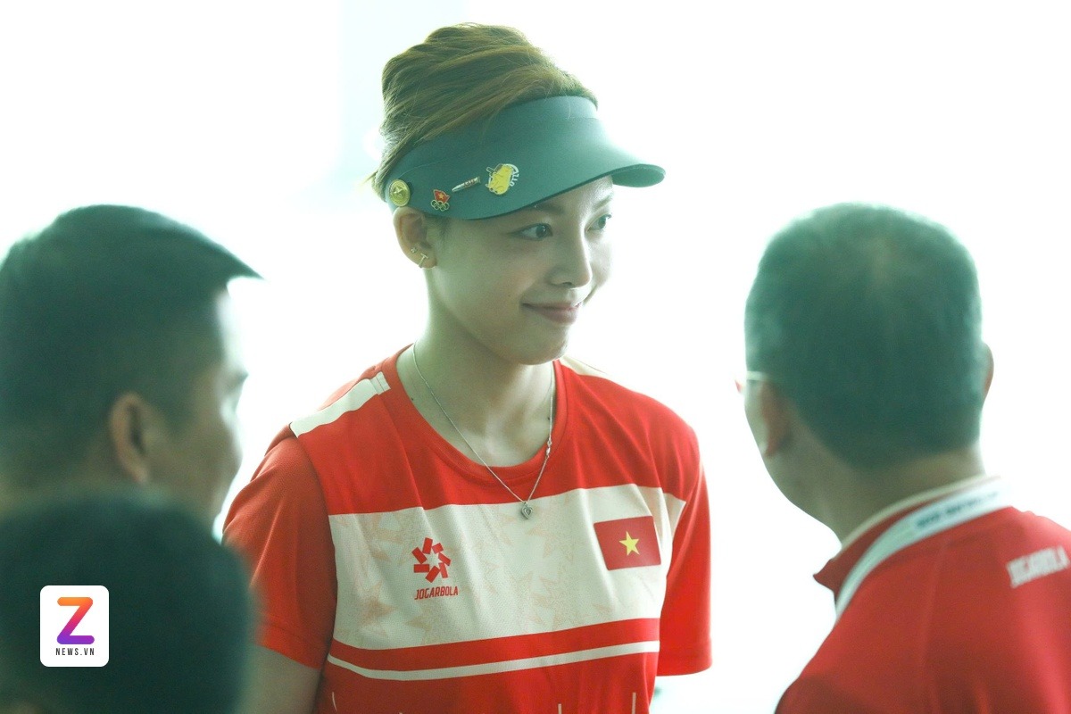 Thanh Thảo cho biết cô vẫn còn những nội dung thi đấu khác và sẽ cố gắng sẽ đạt thành tích cao nhất tại các phần thi tiếp theo. Cô cũng chia sẻ về áp lực khi các VĐV cạnh tranh nhau từng chút, khiến cô phải "chắt chiu" hơn trong từng lần bắn, cảm thấy "áp lực trên từng viên một". Ảnh: Minh Chiến. |