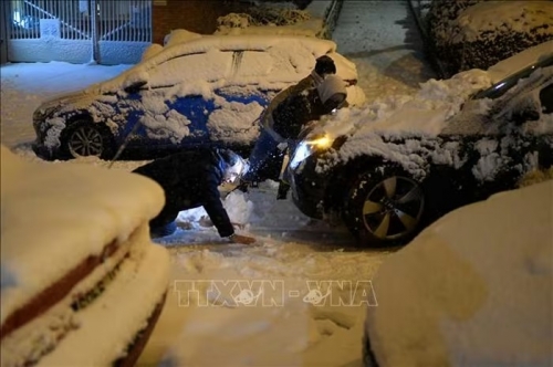 Các phương tiện mắc kẹt do tuyết rơi dày đặc tại Madrid, Tây Ban Nha. Ảnh tư liệu: AFP/TTXVN |
